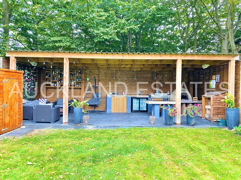 Externally, to the front a block paved driveway with Off Street Parking for 2-3 cars. At the Rear a Large South Easterly facing Landscaped Garden, mainly laid to lawn with new patio and feature covered outdoor Kitchen at the ar end of the Garden.