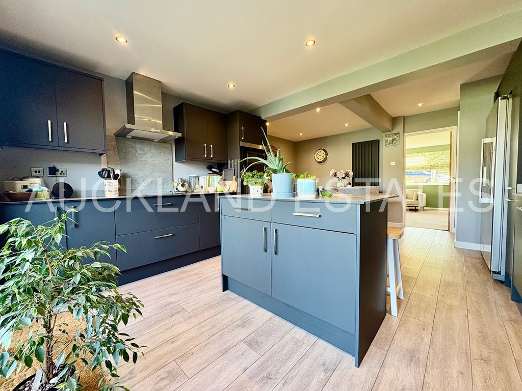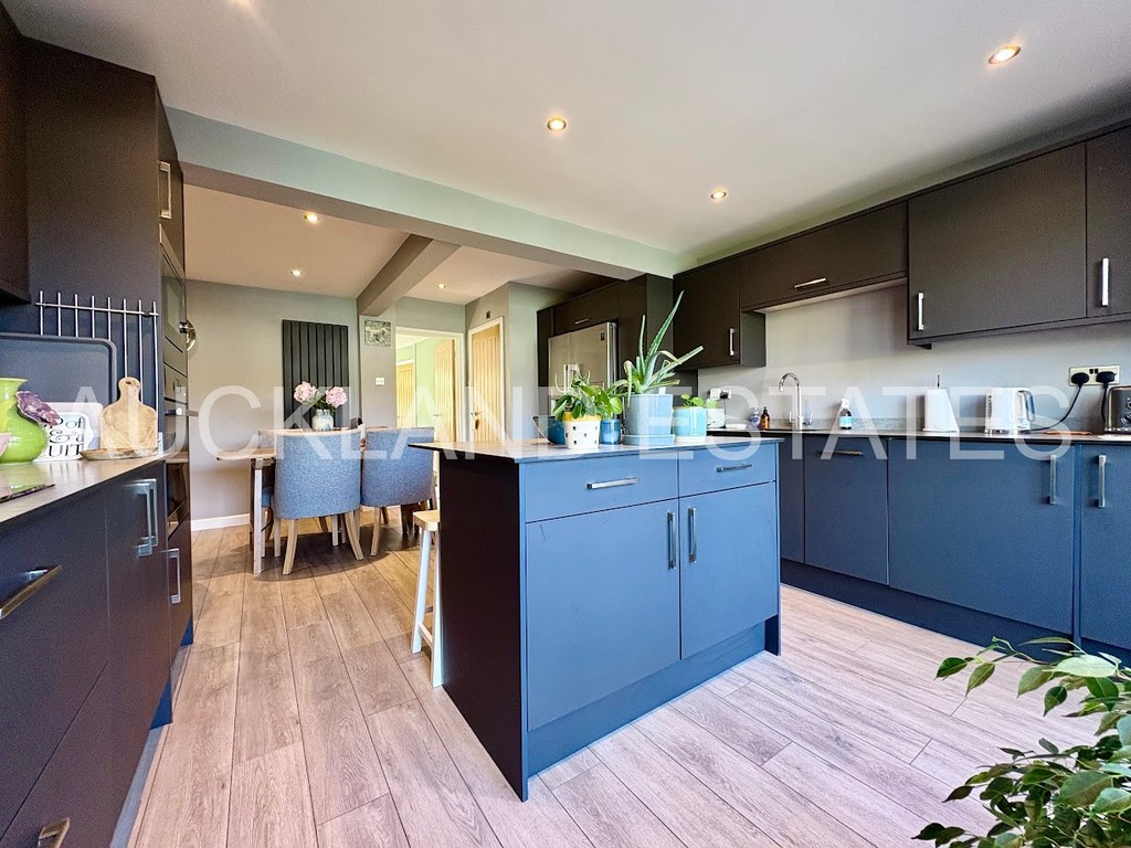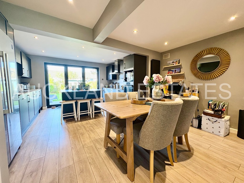The home has been recently updated throughout and features a stunning open plan kitchen diner, complete with a central island, modern fittings, and plenty of space for a large dining table. Bi-folding doors open directly onto the rear garden, creating a seamless indoor-outdoor flow perfect for entertaining and family gatherings.