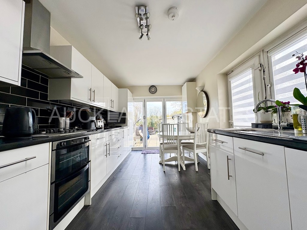 The home features a bright and welcoming ground floor with a spacious living area flowing seamlessly into the extended modern kitchen, offering ample storage and a sleek contemporary finish. The rear extension ensures wonderful natural light and provides an ideal space for everyday family life and entertaining.