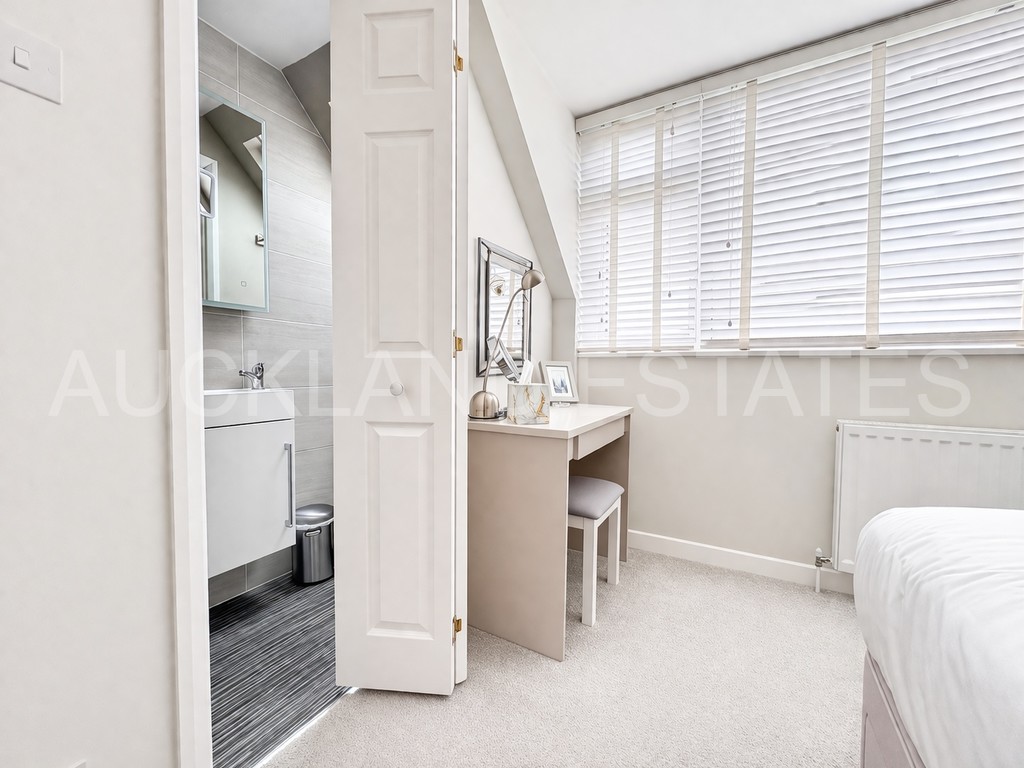 Upstairs, the property comprises three well-proportioned bedrooms, all bright and airy thanks to large windows. The principal bedroom further benefits from a modern en-suite shower room, creating a comfortable and practical living environment.