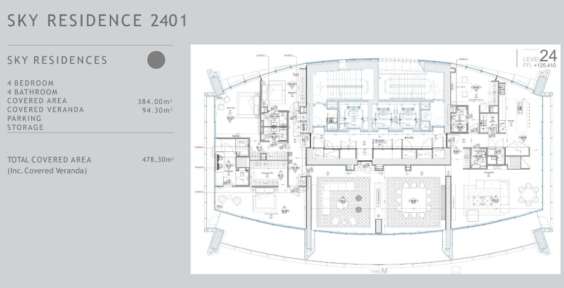 As the only residence in the tower to occupy an entire floor, our exclusive four-bedroom sky villa offers an unrivaled sense of space, privacy, and prestige. Perched on the 24th floor, this one-of-a-kind home features a full 360° view, seamlessly capturing the vibrant city, the majestic mountains, and the endless Mediterranean Sea. Designed with grandeur in mind, the villa boasts soaring double-height atriums, sophisticated open-plan living, and radiant finishes, setting a new benchmark for luxury high-rise living. Details: 4-bedroom luxury sky villa 4 en-suite bathrooms and 1 guest toilet Total covered area: 478 square meters italian-designed kitchen with Miele appliances Feature walls with wood and stone elements. Underfloor heating Hidden VRV air-conditioning system Smart home system for controlling lighting, curtains, and music via a central touch screen Large covered veranda of 94 sqm with direct sea-facing views Amenities: 24-hour reception Concierge service Secure car park Bicycle parking Outdoor swimming pool with deck area Spa with treatment room, sauna, steam bath Gym Meeting room Business centre Wine cellar Outdoor children’s playground Children’s pool area Outdoor sitting area/terrace Wi-Fi coverage of communal areas ONE is 37 stories of exceptional seafront living, offering exclusivity and rarity. The iconic architecture gives the Limassol skyline a striking new definition that is recognised from anywhere in the city. ONE is the pinnacle of high rise luxury living, offering to its international residents an elegant luxury lifestyle with privacy and discreet freedom. inside the walls of ONE the services and amenities provided are exclusivity for its residents creating a haven of peace and privacy. With just three apartments per floor and three lifts, security and exclusivity are evident throughout. As you step into a ONE apartment, you are immediately struck by the uplifting levels of light, the incredible sea views, the open, generous space, and the refinement of detailing. Warm meets cool in the interior design palettes with marble, glass, stone, and stainless steel forming a fresh feel, while woods and natural hues emit innate calm.