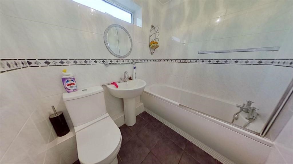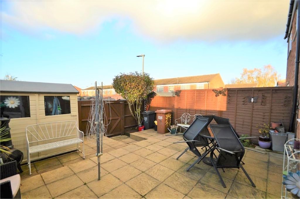 The first floor accommodation comprises three double bedrooms and a family bathroom. The property’s garden is laid to patio slabs for ease of maintenance, there are wooden fence panels to the sides and also gated access to the rear.