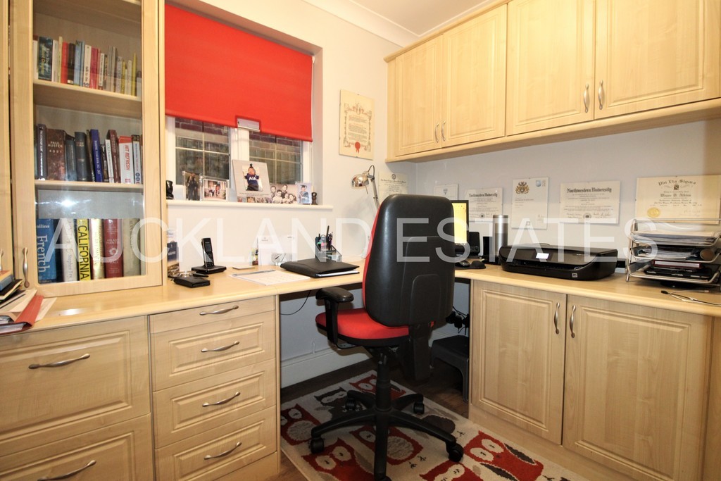 The property benefits from 4 good BEDROOMS, a Ground Floor Study, Modern Kitchen/Diner and Spacious Living Room with direct access to a secluded rear Garden. Versatile accommodation is arranged over 2 floors with the fourth Bedroom (Ground Floor) currently being used as a Family/TV Room. This detached family home is immaculately presented with modern and integrated Kitchen appliances 2 Bathrooms (1 en-suite) and ample storage throughout.