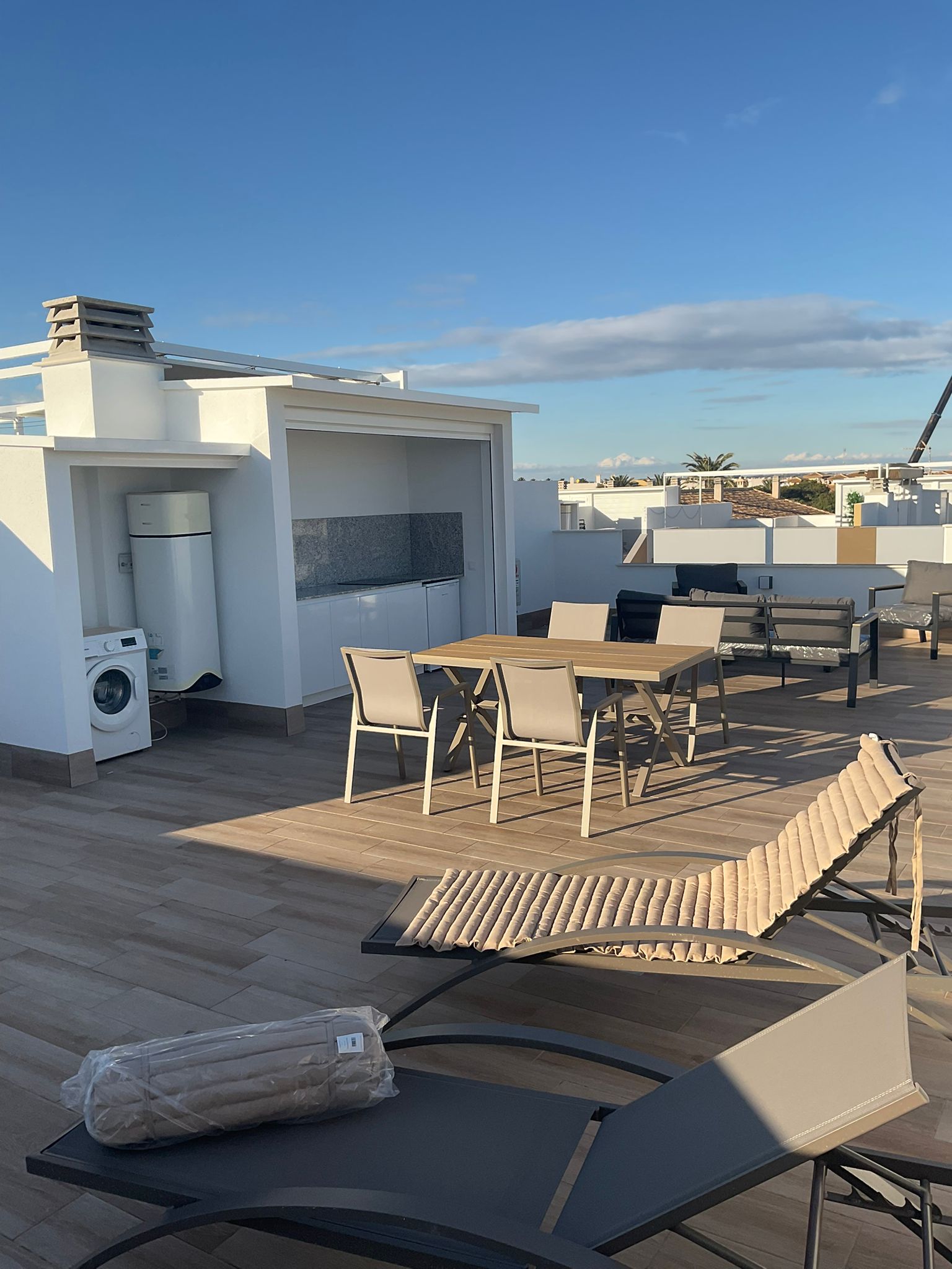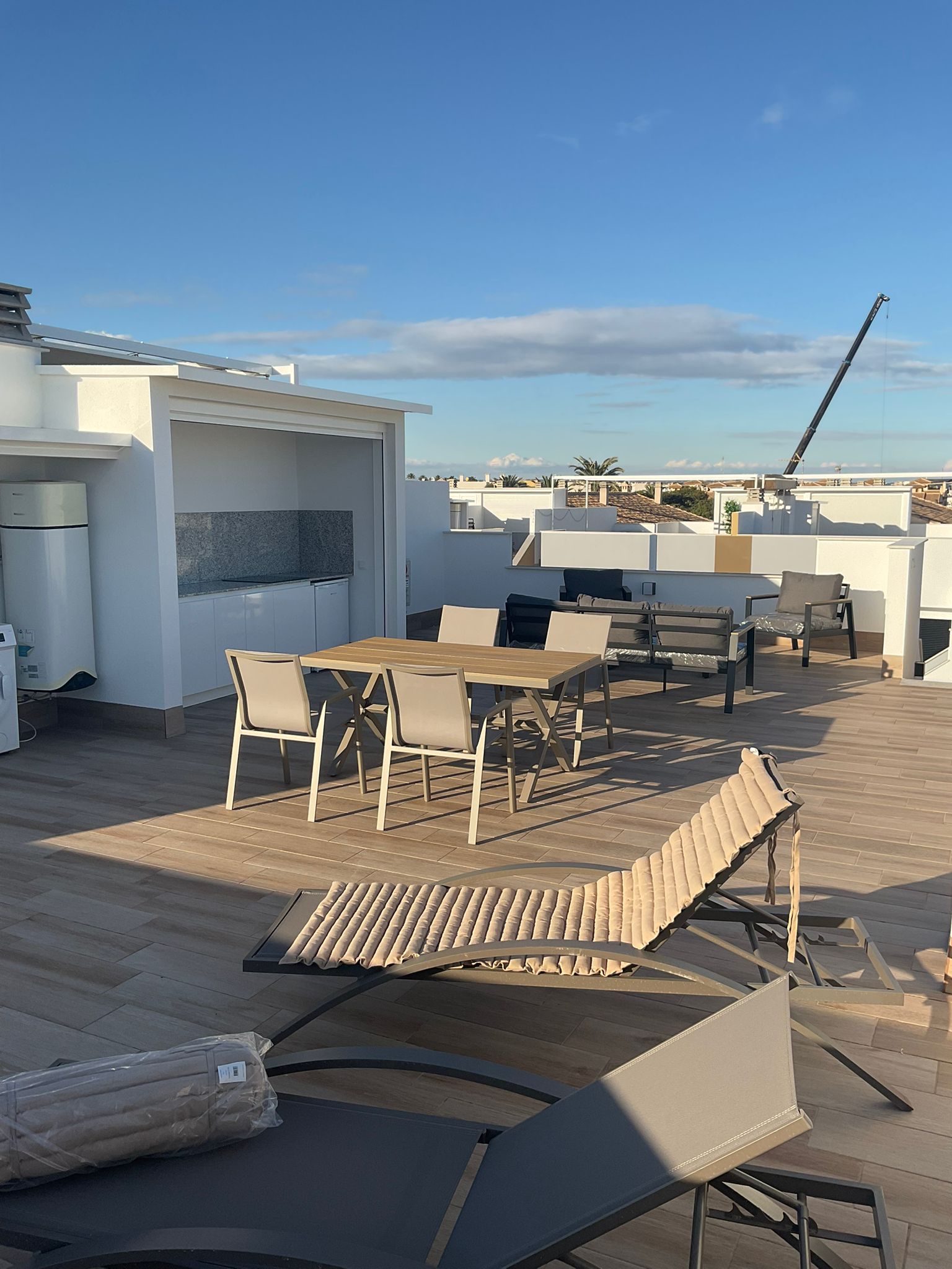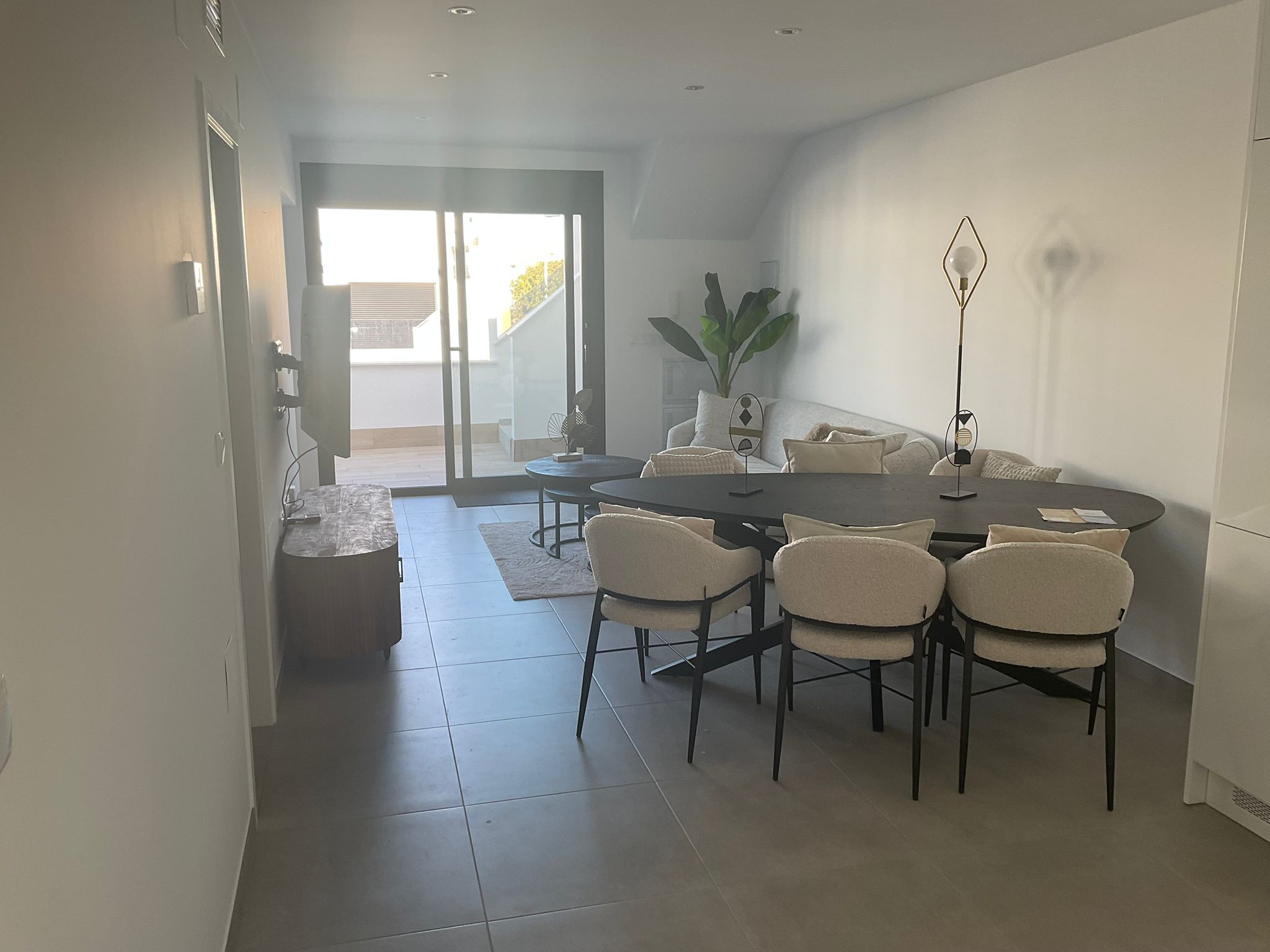 We present to you this brand new modern apartment in San Pedro Del Pinatar. It has 3 large bedrooms and 2 bathrooms. The apartment is part of a 16 apartment complex with communal pool. Walking distance to bars/restaurants, beach, bus routes, banks etc